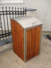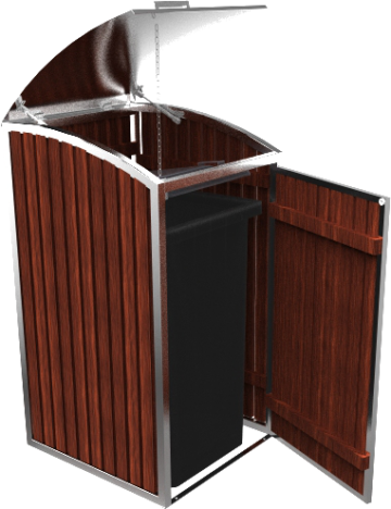 Die Mülltonnenbox Alice ist eine Verkleidung für Ihre Mülltonne. Sie wurde aus hochwertigem Edelstahl gefertigt. Die Einlagen bestehen aus Holzlatten, welche mit Präparaten von höchster Qualität konserviert wurden, so dass sie extrem widerstandsfähig sind und resistent gegen verschiedene Witterungsverhältnisse.